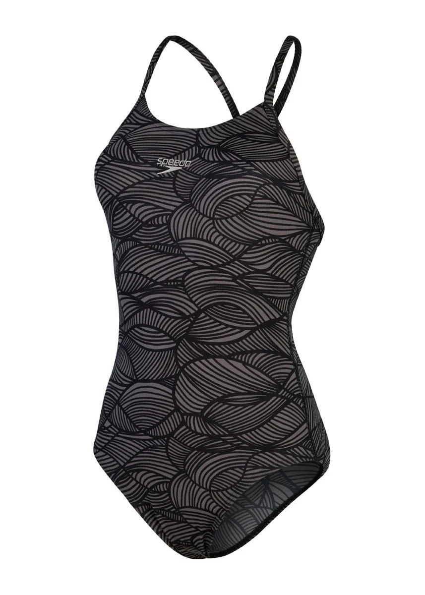 Get ready to train hard and look good in high-performance prints. Perfect for all sessions, this striking Fixed Crossback swimsuit features a sophisticated black and charcoal monochrome print. The Fixed Crossback design includes thin straps to allow unrestricted shoulder movement during every reach and pull, plus a pretty teardrop-shaped back that offers greater side and lower back coveage than most of Speedos thin strap suits, making it ideal for training. Made to withstand daily swim sessions, Speedos ECO Endurance+ fabric is 100% chlorine resistant, quick-drying and made using 50% recycled materials.