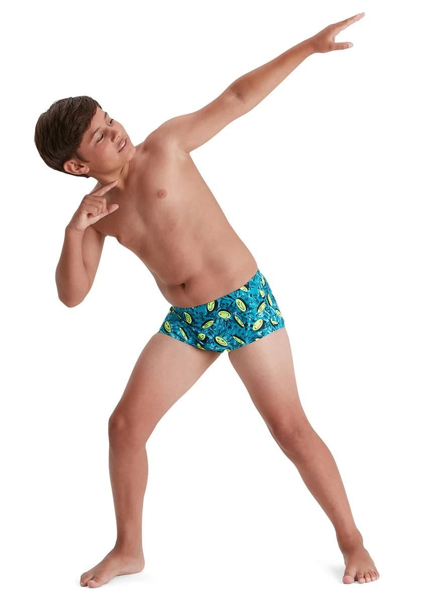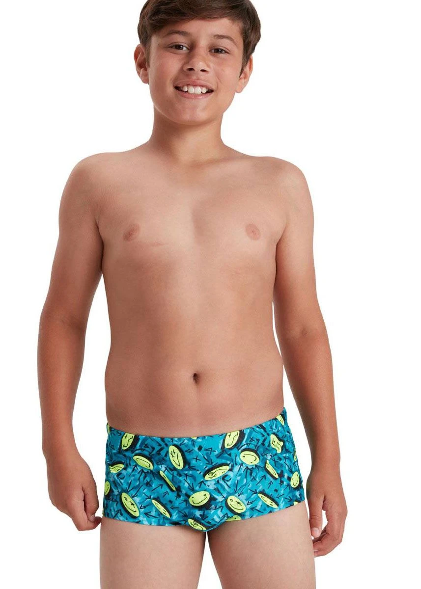 Look cool, swim fast. Colourful and bright with a fun smiley face print, this 13cm Brief offers junior