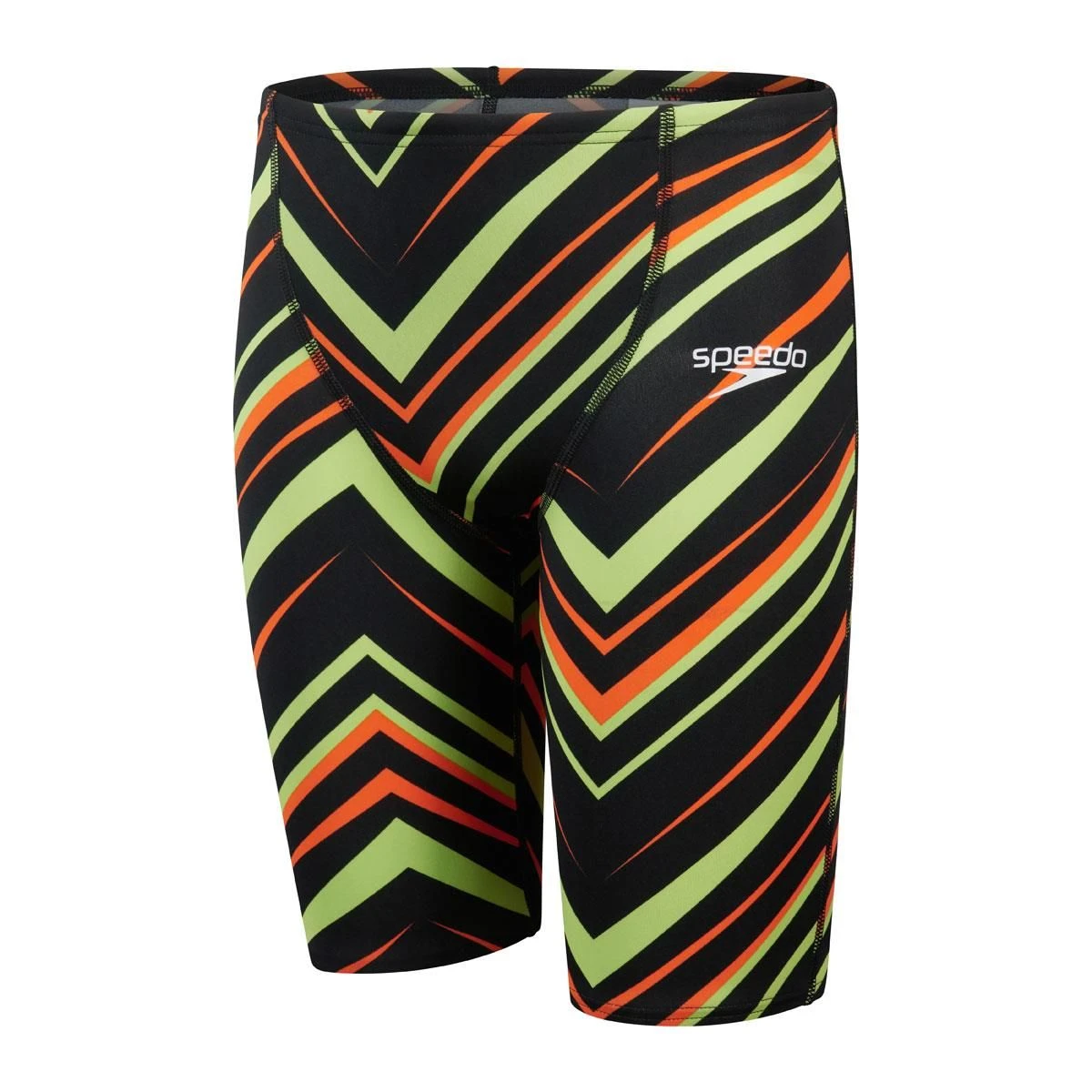 swimmers. Built for competing, its low profile flat lock seams reduce irritation, and its 4-way stretch fabric ensures comfort, allowing you to focus on your race. The bold all-over chevron print means you’ll stand out on the blocks. It’s designed to last and withstand everything your race day swim sessions throw at it.