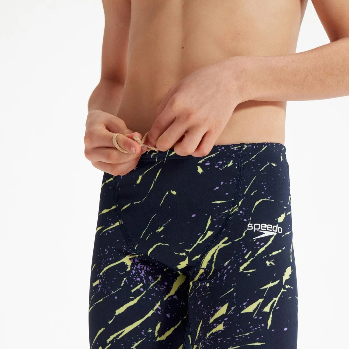 Speedo Junior Fastskin Endurance+ Highwaist Jammers in True Navy/ Miami Lilac/ Spritz. With it’s vibrant colours, you are sure to stand out on the blocks in front of your competitors. This Jammer is made from Endurance+ material which is 100% chlorine resistant, meaning that it can withstand and last everything your race day has to throw at it.