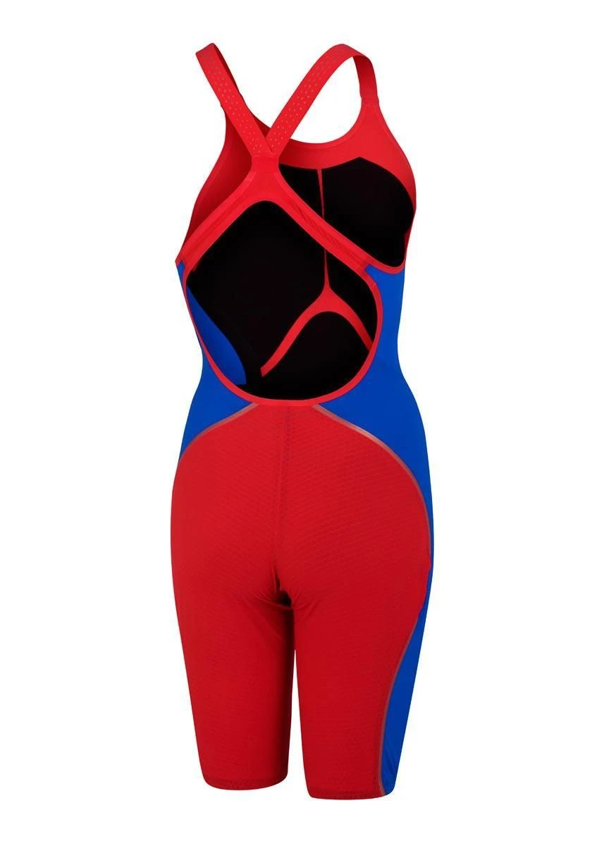 Feel unstoppable wearing Speedo’s latest innovation – developed by swimmers for swimmers. The Fastskin LZR Pure Intent Openback Kneeskin in Dragon Fire features compressive dual layers and ergonomic seam construction designed to connect key muscle groups for greater power return.