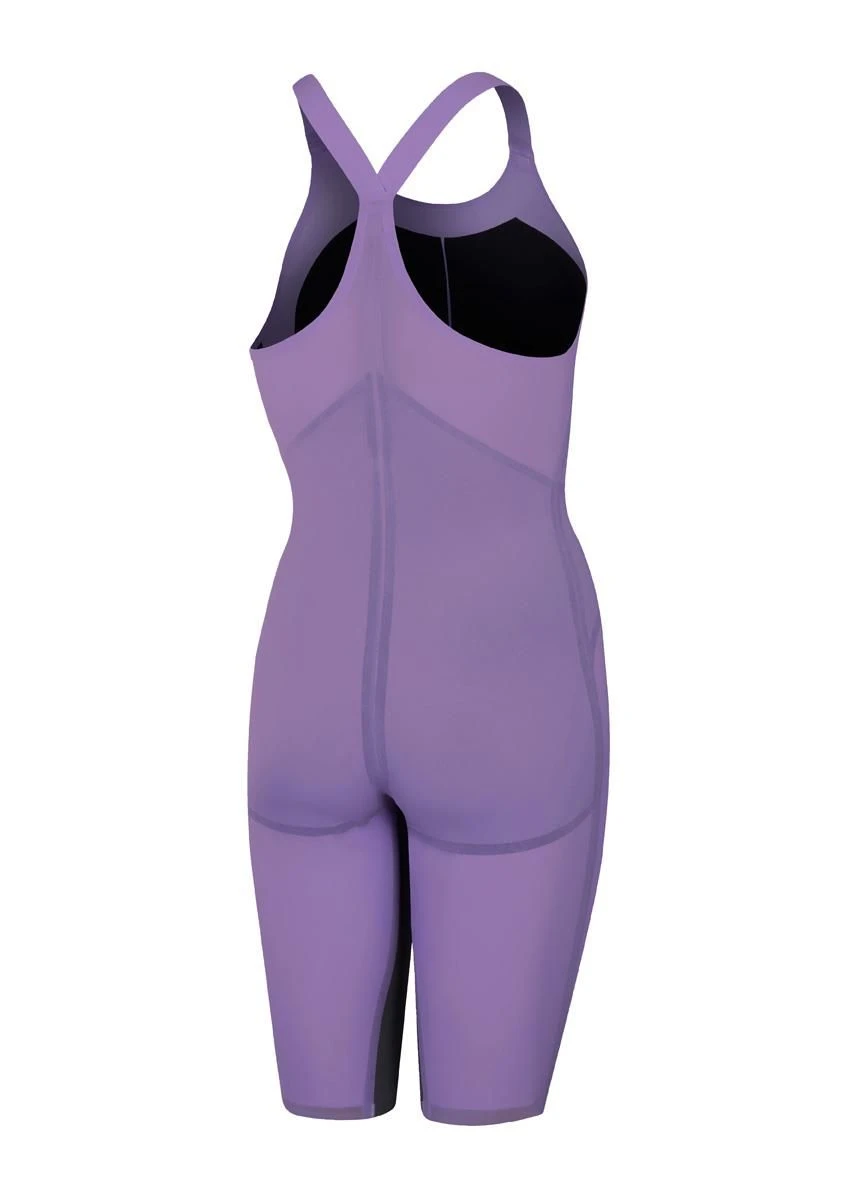 The Speedo Fastskin LZR Pure Valor Openback Kneeskin in Purple Reign is made from lightweight material and features moderate compression. The construction is designed to support a greater range of movement.