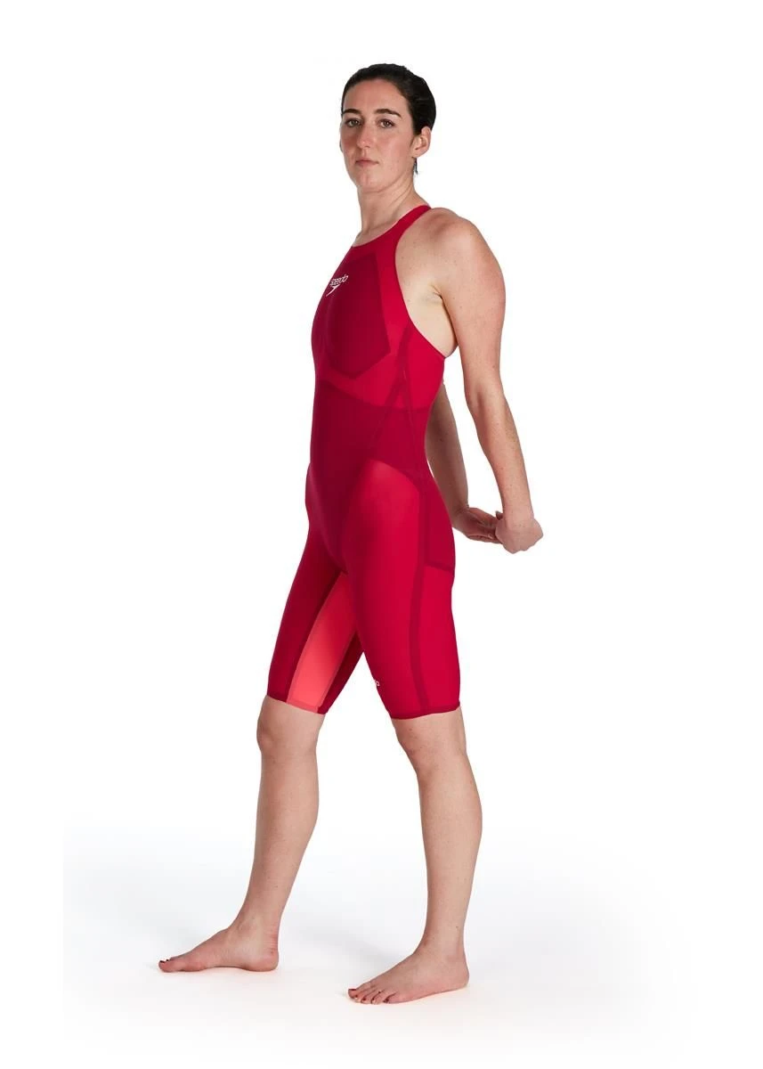 Feel unstoppable wearing Speedo innovation, developed by swimmers for swimmers. The Fastskin LZR Pure Valor Closedback Kneeskin in Dark Magenta and Phoenix Red is made from lightweight material and features moderate compression and construction designed to support a greater range of movement. Dual layering around the abs offers greater core stability so you get the best out of your swim.
