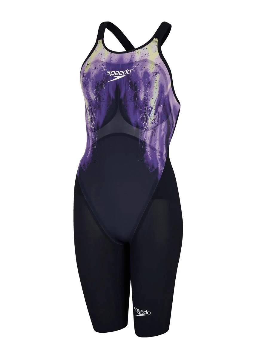 The Speedo Fastskin LZR Pure Valor Openback Kneeskin in Cosmic Storm is made from lightweight material and features moderate compression. The construction is designed to support a greater range of movement.