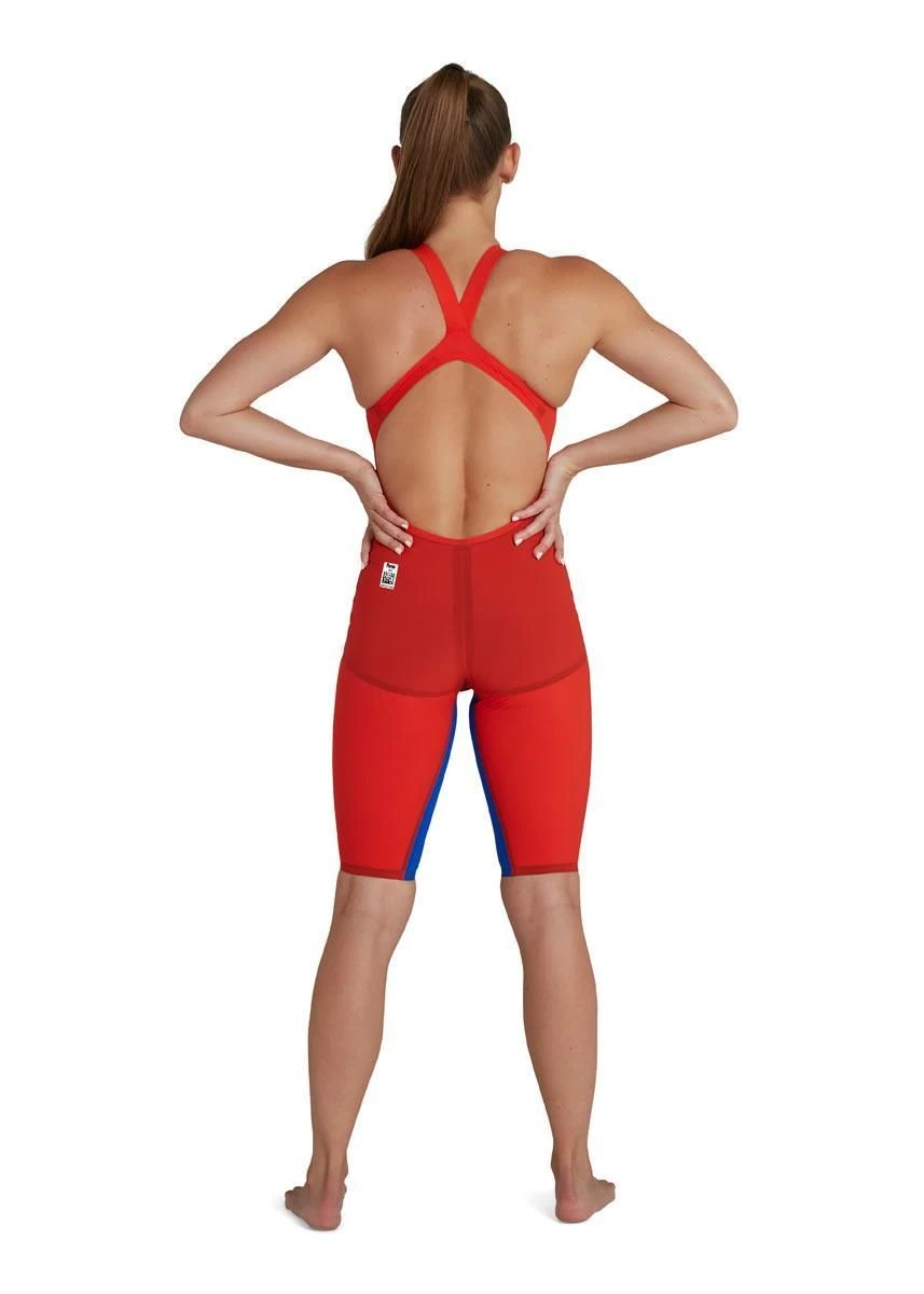 Feel unstoppable wearing Speedo’s latest innovation – developed by swimmers for swimmers. The Fastskin LZR Pure Valor Openback Kneeskin in Dragon Fire is made from lightweight material and features moderate compression. The construction is designed to support a greater range of movement.
