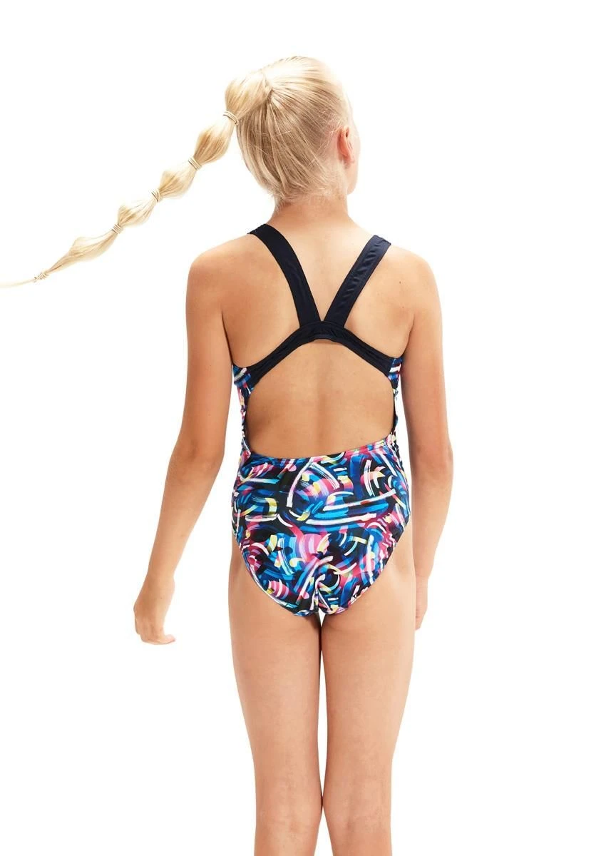 Colourful and fun, this bold Leaderback swimsuit features a brightly coloured brushstrokes-effect digital print. Perfect for training, the Leaderback style includes V-shaped straps to give young swimmers full range of shoulder movement in the pool. Designed to be durable and better for the environment, it’s made from our new ECO Endurance+ fabric, which is 100% chlorine resistant, quick-drying and made from 50% recycled materials.