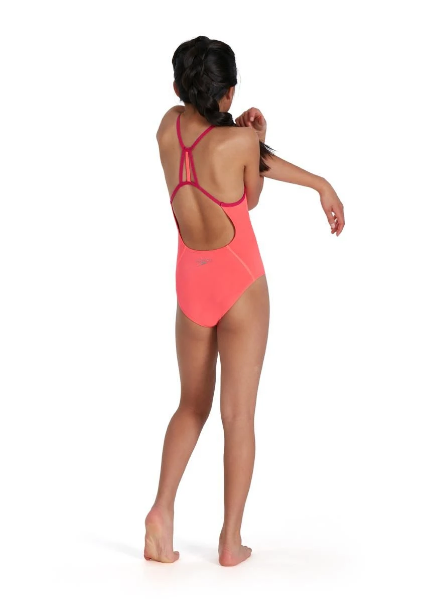 Harness the energy of the vibrant Phoenix red to power you through training wearing this stand out coloured Speedo Lane Line Back swimsuit, featuring thin straps and a lane line back for total flexibility.