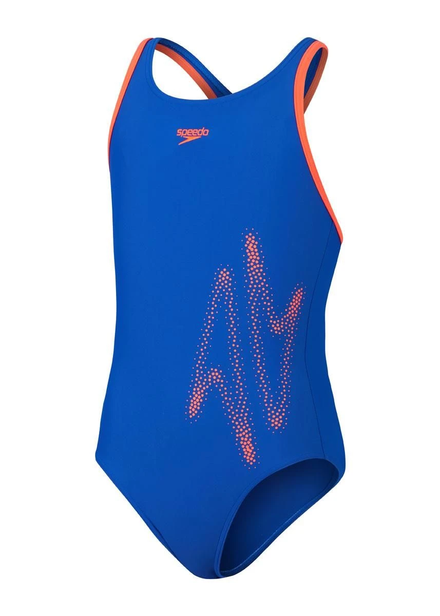 Iconic Speedo Style. A celebration of Speedo branding, this sporty cobalt blue Flyback swimsuit features vertical Speedo Boom graphic in a bright orange spray-paint effect design. A modern twist on a Speedo classic, the Flyback design features skinny racerback straps which sit between the shoulder blades for an unrestrictive fit. The suit is also fully lined at the front for comfort and modesty during their swim. Ideal for regular pool sessions, Speedos ECO EnduraFlex fabric offers higher chlorine resistance than standard swimwear fabrics and fits like new for longer with CREORA® HighClo™. In addition, nylon yarns in the EnduraFlex fabric are made from 100% pre-consumer waste, such as waste fabric from factories.