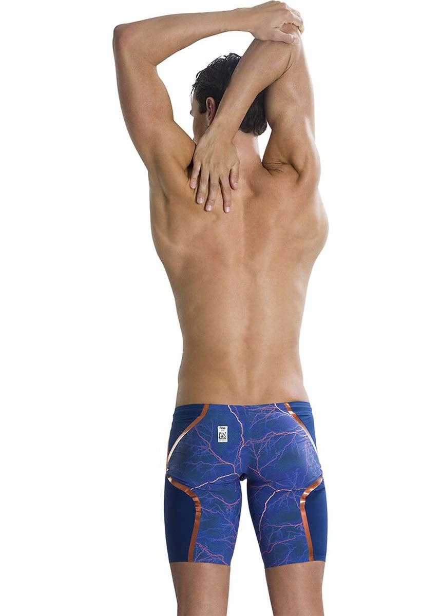 Featuring Speedo’s stunning blue and copper ‘lightning’ print, these jammers feature increased zonal compression through the use of two fabrics.