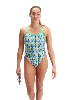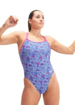 Speedo Allover Digital Lattice Back Swimsuit – Black/True Cobalt/Indigo Glow/Candy Vibe/Orchid Shine